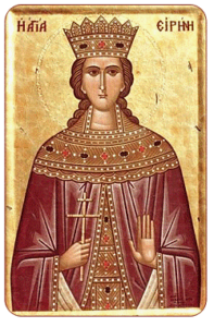 Από τη ζωή των Αγίων μας θεωρούμε σαν ύψιστο υπόδειγμα απερίγραπτης μαρτυρίας και θείας ευδαιμονίας τον βίο και το δράμα της μεγαλομάρτυρος Αγίας Ειρήνης και τα ασύλληπτα δεινοπαθήματά της. Η Αγία μεγαλομάρτυς Ειρήνη έζησε η αθώα την ευδαιμονία μέσα από τα παθήματά της και επικοινωνούσε από τον κόσμο αυτό με τους κατοίκους του άλλου… Την …