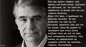 Ακούστε τα και πάρετε τις αποφάσεις σας για σας και τα παιδιά σας! Η ΕΛΛΑΔΑ ΕΙΝΑΙ ΚΡΑΤΟΣ ΥΠΟ ΔΙΠΛΗ ΚΑΤΟΧΗ: ΝΤΟΠΙΑ ΚΑΙ ΞΕΝΗ Για τον διακεκριμένο καθηγητή πολιτικής επιστήμης, πρώην Πρύτανη της Παντείου και εκλεκτό συμπατριώτη μας κ. Γιώργο Κοντογιώργη, το παιχνίδι στη χώρα μας είναι στημένο και από πριν ξεπουλημένο… Πολιτικοί «καρμπόν», μέσα σ’ …