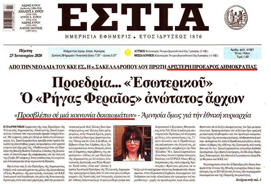 Η ΣΑΚΕΛΛΑΡΟΠΟΥΛΟΥ ΠΡΩΤΗ ΑΡΙΣΤΕΡΗ ΠΡΟΕΔΡΟΣ ΤΗΣ ΔΗΜΟΚΡΑΤΙΑΣ.