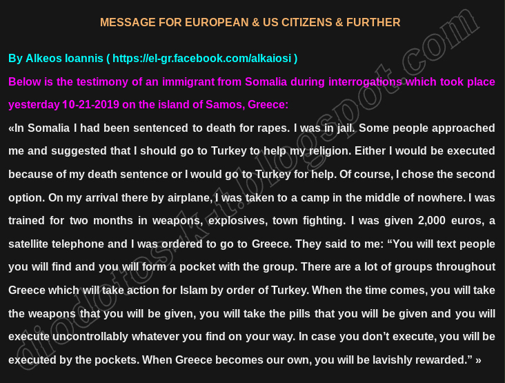Μήνυμα Τούρκου πράκτορα της ΜΙΤ προς δήθεν πρόσφυγες https://diodotos-k-t.blogspot.com/2019/10/blog-post_57.html