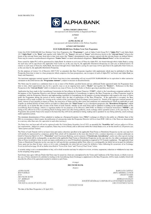 Η πρόταση ανταλλαγής ομολόγων της Alpha, που είχε ανακοινωθεί και αφού είχε προηγηθεί με ανάλογη πρόταση η Τράπεζα Πειραιώς, καλύπτει σειρά τίτλων που έχει εκδώσει η τράπεζα, με σημερινή ονομαστική αξία άνω του 1 δισ. ευρώ.