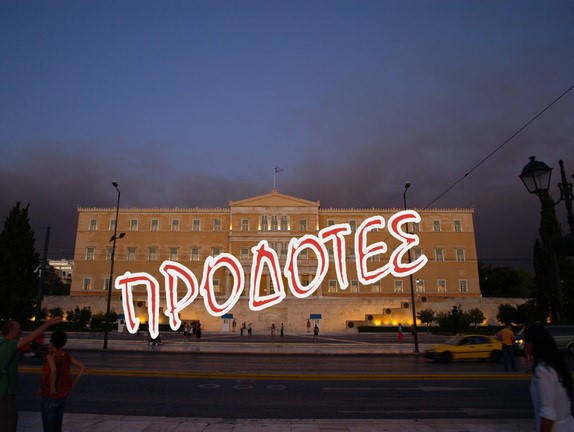 Έτσι, οι πολιτικοί σχηματισμοί του ΠΑ.ΣΟ.Κ και της ΝΕΑΣ ΔΗΜΟΚΡΑΤΙΑΣ βαρυνόμενοι με κακουργηματική δραστηριότητα, ένεκα της συγκεκριμένης εγκληματικής δράσεώς των, ως ΕΚΒΙΑΖΟΜΕΝΟΙ πλέον, έχοντας οι ίδιοι αφομοιώσει στο είναι τους τον ρόλο της εκδιδόμενης συνειδήσεώς των, βρέθηκαν σε αδυναμία διαπραγμάτευσης και σε πολιτική και ποινική ομηρία εγκλωβισμένοι αυτοί και οι από κοινού υπόλογες Συνταγματικές λειτουργίες της Πολιτείας, πιόνια πλέον των εκβιαστών των, χωρίς αντίλογο, ΠΑΡΕΔΩΣΑΝ ΕΝΣΥΝΕΙΔΗΤΩΣ ΚΑΙ ΜΕΘΟΔΕΥΜΕΝΑ ΤΗΝ ΧΩΡΑ στο Διεθνές Νομισματικό Ταμείο και στην Τρόϊκα που εν είδει μαστροπού ΝΟΜΟΘΕΤΟΥΝ, ΕΠΙΒΑΛΛΟΝΤΑΣ την θέληση των Διεθνών τοκογλύφων, με την ΕΚΒΙΑΖΟΜΕΝΗ εκάστοτε Κυβέρνηση να υποκύπτει «πεσμένη στα τέσσαρα».