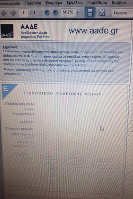 Οι φορολογικές δηλώσεις εκδίδονται στο όνομα της Ανεξάρτητης Αρχής Δημοσίων Εσόδων η οποία ελέγχεται καθ’ ολοκληρίαν από τους δανειστές-τοκογλύφους.