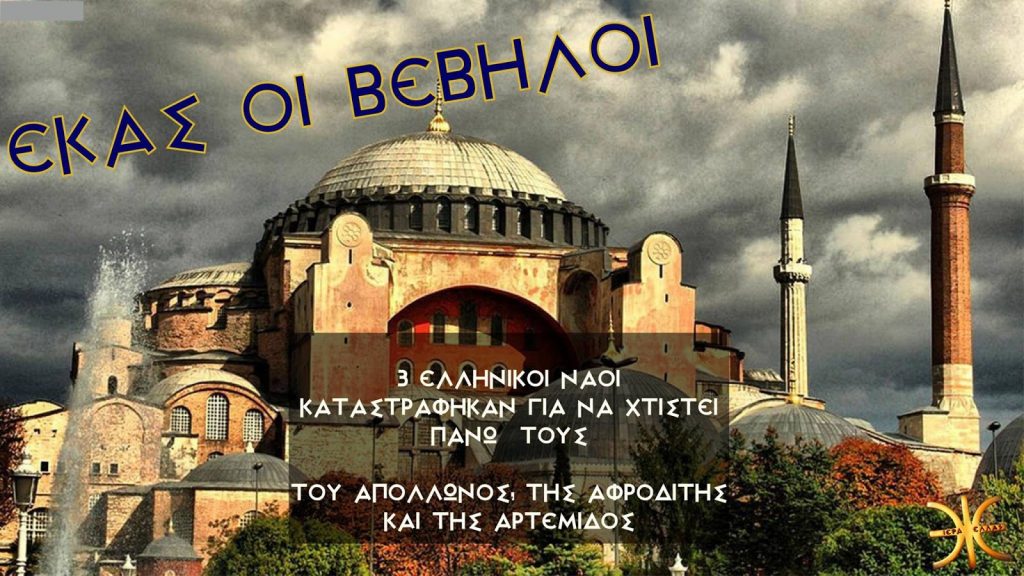 ΑΓΙΑ ΣΟΦΙΑ ΕΚΑΣ ΟΙ ΒΕΒΗΛΟΙ, οι νεοπαγανιστές ειδωλολάτρες που τρέφουμε στον κόρφο μας δεν νοιάζονται που όλα έχουν τουρκέψει η γερμανοφασιστοποιηθεί. Ευχαρίστως θα γκρέμιζαν την ΑγιαΣοφιά προκειμένου να αποκαλύψουν τυχόν ερείπια των ναών του Απόλλωνα, της Αφροδίτης και της Αρτέμιδας αν ισχύει αυτό που επικαλούνται, ασφαλώς προς δόξαν και αύξηση του τούρκικου τουρισμού!