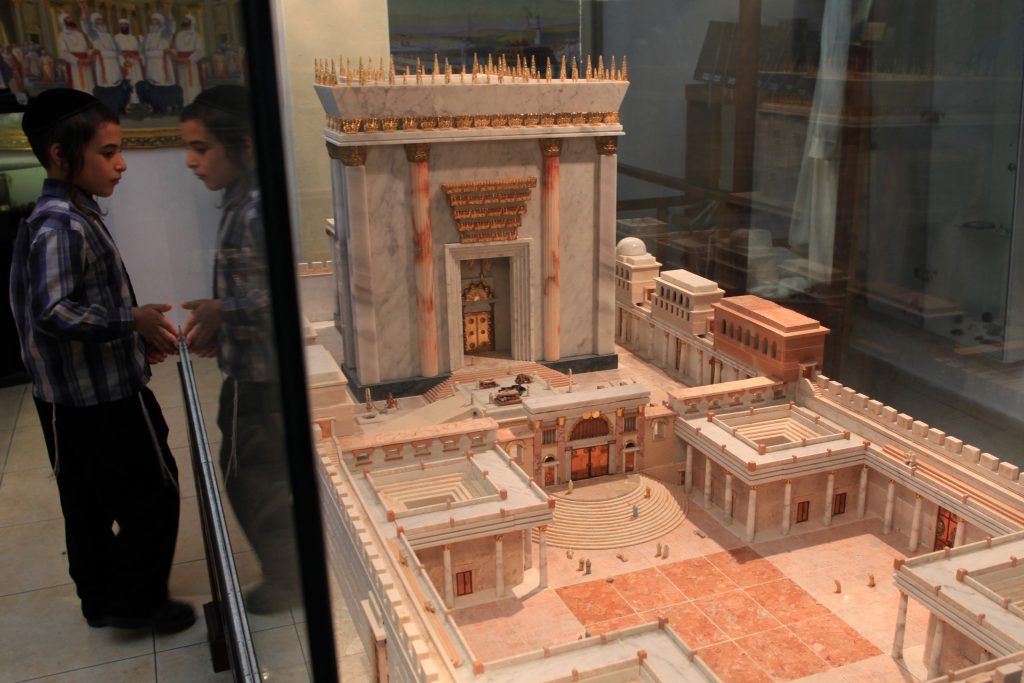 Ένας Ορθόδοξος Ιουδαίος κοιτάζει το μοντέλο του Τρίτου υπό κατασκευήν Ναού του Σολομώντα. βρίσκεται σε επίδειξη στο Ινστιτούτο του Ιουσαϊκού Τέμπλου στην παλιά πόλη των Ιεροσολύμων. Ο κύριος στόχος του Ινστιτούτου είναι να ξεκινήσει την ανακατασκευή του ναού.