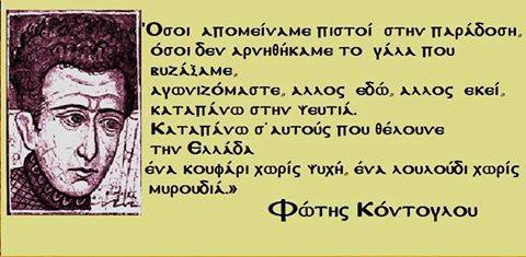 Φώτης Κόντογλου, Μακρυγιάννης, Θοδωράκης Κολοκοτρώνης αυτών τις ιερές παρακαταθήκες διαφυλάξατε