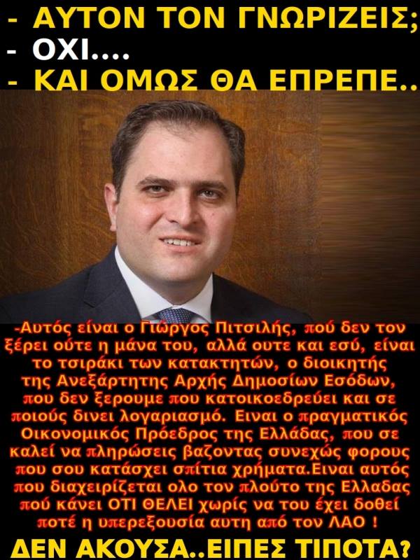 Είναι πολύ σημαντικό να αντιληφθεί ο λαός, πως ΕΠΙΒΑΛΕΤΑΙ ΝΑ ΚΑΝΕΙ ΣΤΑΣΗ ΠΛΗΡΩΜΩΝ, γιατί πέραν της παρανόμως ιδρυθείσας ΑΑΔΕ, τα χρήματα που καταβάλει για τους υπέρογκους φόρους, πηγαίνουν στην Γερμανία, στην οποία ανήκει η ΑΑΔΕ…