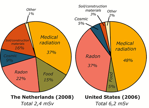 Σύγκριση της ακτινοβολίας που δέχονται οι Βορειοαμερικανοί και οι Νορβηγοί. Υπερτερεί η ακτινοβολία για ιατρικούς λόγους.