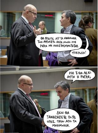 Επιτρέπεται όμως ένα κράτος να ανέχεται τους εξευτελισμούς και τις προσβολές των «βαρβάρων», απλά και μόνο για να επιβιώσει; Έχει το δικαίωμα να αδιαφορεί για τις επόμενες γενιές, για τα παιδιά του και για τα παιδιά των παιδιών του, τα οποία καταδικάζει στην φτώχεια, στα μνημόνια στο διηνεκές και στη διεθνή ανυποληψία, αντί να τους κληροδοτήσει, ως οφείλει, κάτι περισσότερο από όσα κληρονόμησε το ίδιο;