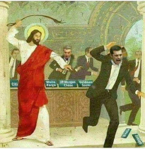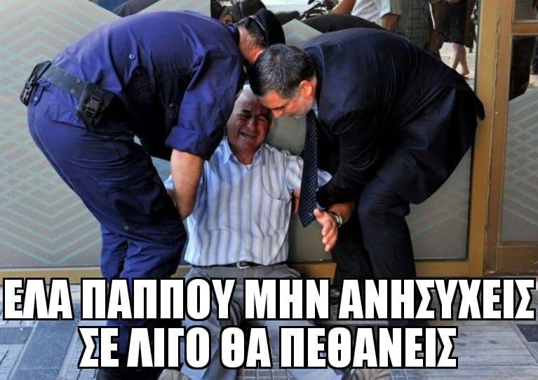 Ὁ Θεὸς τῶν πνευμάτων καὶ πάσης σαρκός, ὁ τὸν θάνατον καταπατήσας,τον κομμουνισμόν συντρίψας τὸν δὲ διάβολον της Αριστεράς καταργήσας, καὶ ζωὴν τῷ κόσμῳ σου δωρησάμενος, αυτός, Κύριε, ἀνάπαυσον τὴν ψυχὴν τοῦ κεκοιμημένου δούλου σου, ἐν τόπῳ φωτεινῷ, ἐν τόπῳ χλοερῷ, ἐν τόπῳ ἀναψύξεως, ἔνθα ἀπέδρα ὀδύνη, λύπη ΣΥΝΤΑΞΗ, ΕΝΦΙΑ, ΔΕΗ, ΕΦΟΡΙΑ καὶ στεναγμός. Πᾶν ἁμάρτημα τὸ παρ’ αὐτοῦ πραχθὲν ἐν λόγῳ ἢ ἔργῳ ἢ διανοίᾳ, ὡς ἀγαθὸς καὶ φιλάνθρωπος Θεός, συγχώρησον· ὅτι οὐκ ἔστιν ἄνθρωπος, ὃς ζήσεται καὶ οὐχ ἁμαρτήσει Ως Δεξιός ή και ως Αριστερός Πασόκος, Σοσιαλιστής αλλά και Χρυσαυγίτης· σὺ γὰρ μόνος ἐκτὸς ἁμαρτίας ὑπάρχεις, ἡ δικαιοσύνη σου δικαιοσύνη εἰς τὸν αἰῶνα, καὶ ὁ νόμος σου ἀλήθεια και αδιάψευστος μάρτυς σου ο της Κολάσεως ψεύτης Τσίπρας.
